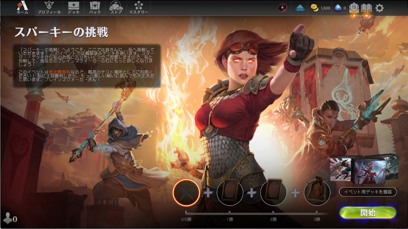 カラーチャレンジを終えると、ホーム画面に「スパーキーの挑戦」が追加されています。3勝でコンプリートです。
