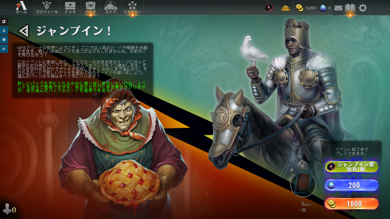 これまでに、チュートリアル、スターター・デッキ戦、スパーク・ランク、メールなどによって、ジャンプインとクイック・ドラフトの参加券がいくつか支給されています(これは、プレイ時期によって多少異なるかもしれません)。
