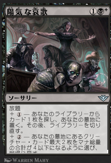 その中でも結果を残したのは、白青黒赤緑マナという5色の伝説クリーチャー「原初の蜘蛛の末裔たち」。他のカードも蜘蛛に寄せておくことで、出せれば戦況を一気に変えられました。あとは、より積極的に墓地を利用する形で、「陽気な哀歌」「救いの手」もよかったです。