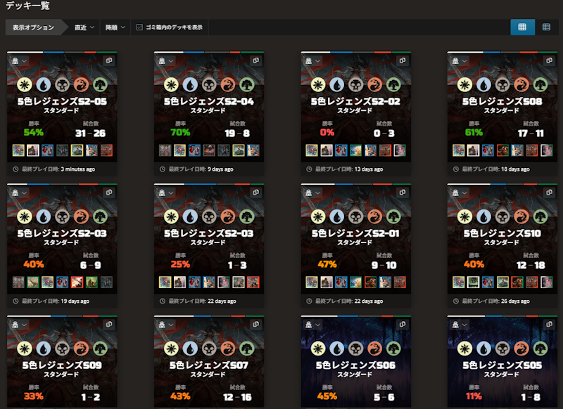 以下は、その苦闘の2ヶ月の歴史の一部。試したデッキ数はいくつあるやら・・・
