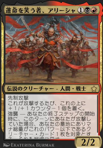 特に、「運命を笑う者、アリーシャ」は2/2のステータスですが、カヴァエロで釣ると4/4です。そうすると、最初から4マナクリーチャーを墓地から出せます。次のターンには5マナのリアニメイト。「セラ・ファロン」が変身していれば、最初から6マナクリーチャーをリアニメイトできます。この動きが結構強かった、という手ごたえがあったのです。