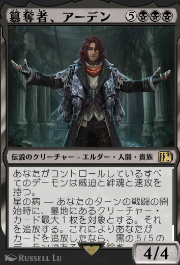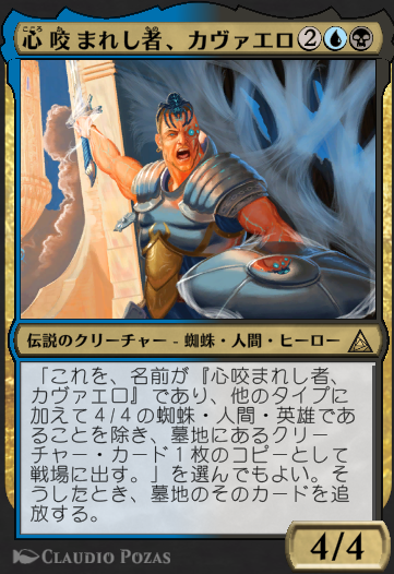 先月は、「陽気な哀歌」「救いの手」などを入れた、より積極的な墓地利用が「いい感じ」だったと書きました。これをさらに進めて、絶賛流行中のカードだけど、元のデッキでは1枚だけひっそりと入っている「心咬まれし者、カヴァエロ」を増やし、「原初の蜘蛛の末裔たち」「岐路に立つアン」や、あとは「運命を笑う者、アリーシャ」などを釣り上げて使うというリアニメイトに寄せた構成はどうか?と考えていました。