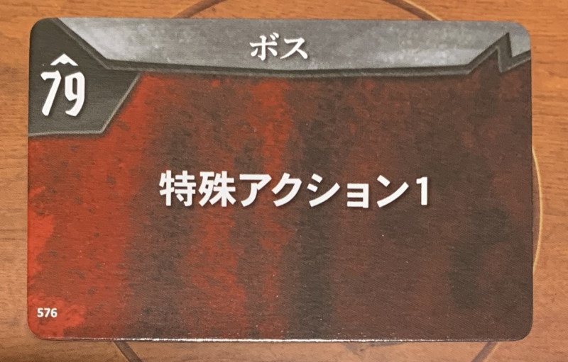 ボスの行動を決めるカードには、「特殊アクション1」とか「特殊アクション2」というカードが混じっています。これを引くと、通常の移動や攻撃の代わりに、特殊アクションを実行するわけです。